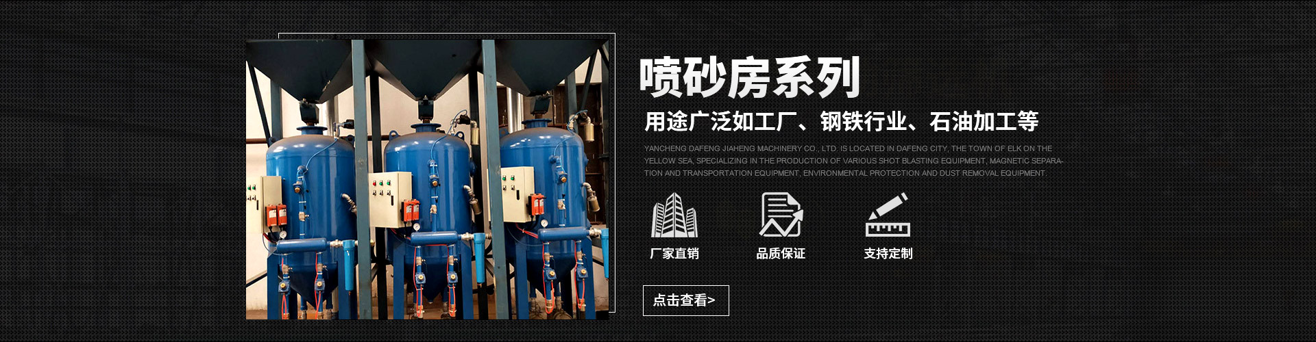 大豐嘉恒機(jī)械主營:噴砂房,通過式拋丸機(jī),履帶式拋丸機(jī),吊鉤式拋丸機(jī),轉(zhuǎn)臺(tái)式拋丸機(jī),滾筒式拋丸機(jī),小型拋丸機(jī)等